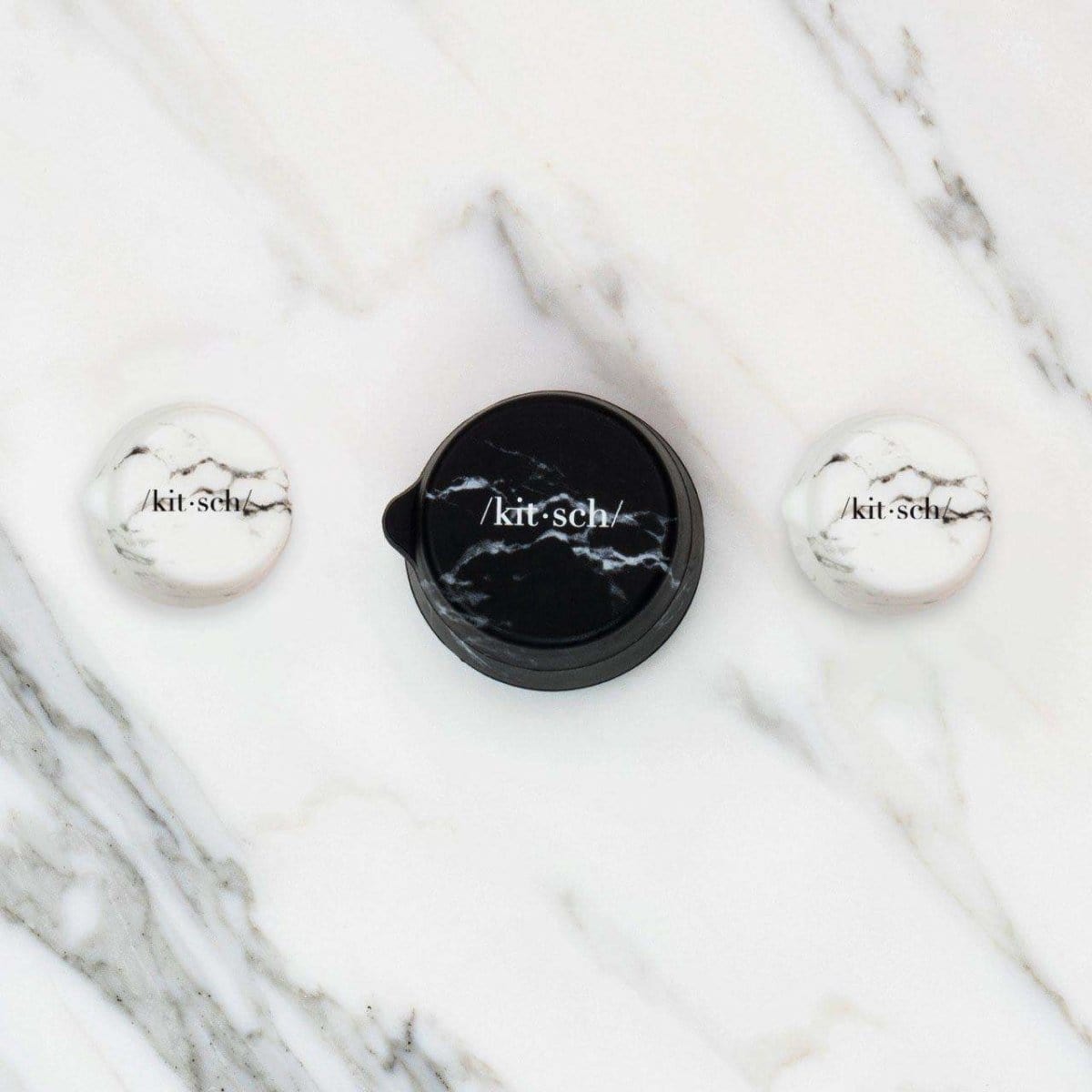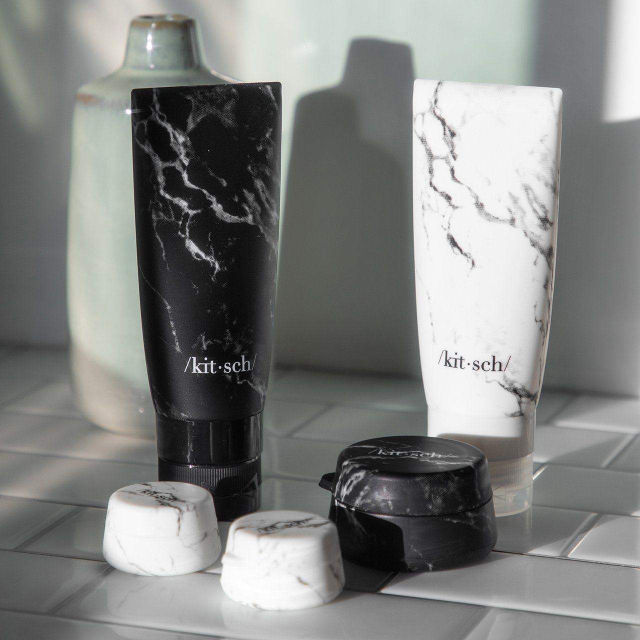 3pc Silicone Travel Jar Set – Black / White Marble